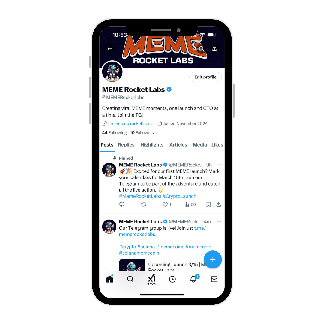 Gear up for liftoff with our debut launch—no astronaut training required! Our Contract Address will be dropped in our launch Telegram on March 15th at 11:00 AM EST.